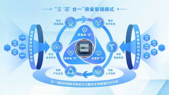 高端制造,贏在毫厘。通富超威半導體提煉并推行“三‘芯’合一”,即質量放“芯”、運營舒“芯”、服務貼“芯”的質量管理模式,構建覆蓋全產業鏈的品控體系,打造智能工廠,以數字化手段對質量數據進行實時監測分析并完成科學改進,確保芯片產品的高標準與一致性。