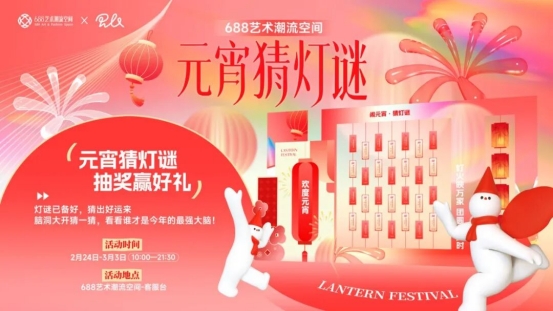688藝術潮流空間:即日起至3月3日,688藝術潮流空間上線元宵猜燈謎活動,贏取展覽門票、美食套餐、非遺年禮等好禮,讓傳統(tǒng)游戲,鏈接新年歡喜。