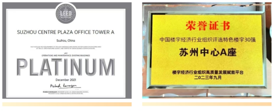 蘇州中心A座先后斬獲LEED運營期既有建筑鉑金級認證、LEEDBDC金級認證以及中國綠色建筑星級認證,入選“全國特色樓宇30強”,成為長三角首個同時擁有綠色認證與運營認證的商辦綜合體。樓宇所在的蘇州中心項目打造業(yè)內(nèi)領(lǐng)先的建筑全生命周期數(shù)字智慧管理系統(tǒng)“心云平臺”。平臺上線后,通過數(shù)字化手段,實現(xiàn)樓宇能耗降低25%、節(jié)水效率提升30%。