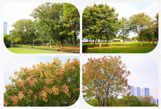 莫怨中秋花事少秋在枝頭欒樹花每到秋天金雞湖畔的欒樹枝頭最先熱鬧起來翠綠的枝椏間掛滿了橙紅透亮的“小燈籠”待風輕輕拂過細碎花瓣便悠悠飄落