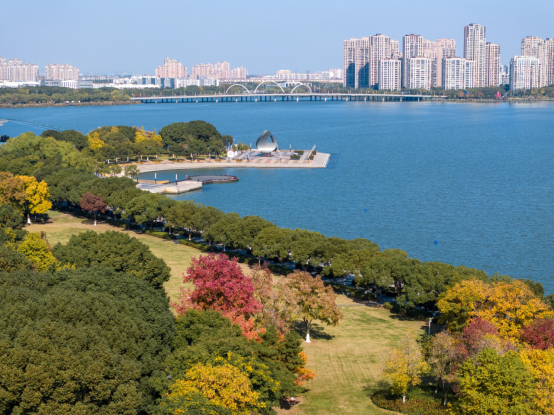 秋風起,秋意濃金雞湖畔悄然換上一身斑斕新裝深淺不一的秋色徐徐鋪陳暈染出一幅絢爛多彩的秋日畫卷