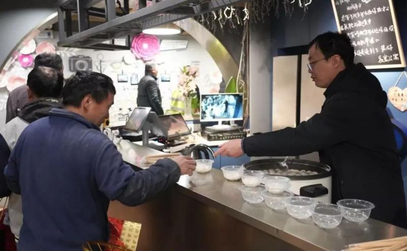 除了法律知識的普及、政策服務的宣傳,活動現(xiàn)場還充滿了濃濃的節(jié)日氛圍。商務區(qū)黨工委為參與活動的集宿區(qū)員工與建筑工人送上熱氣騰騰的湯圓,并將法治元素、黨建元素融入元宵祝福中。湯圓雖小,卻承載著滿滿的溫暖與關(guān)懷,讓這個元宵節(jié)變得格外暖心。此外,商務區(qū)兩新工委準備了傳統(tǒng)冰糖葫蘆,“一串紅果送甜蜜,情暖工友慶元宵”,讓工人朋友在節(jié)日里感受到甜蜜與溫暖。
