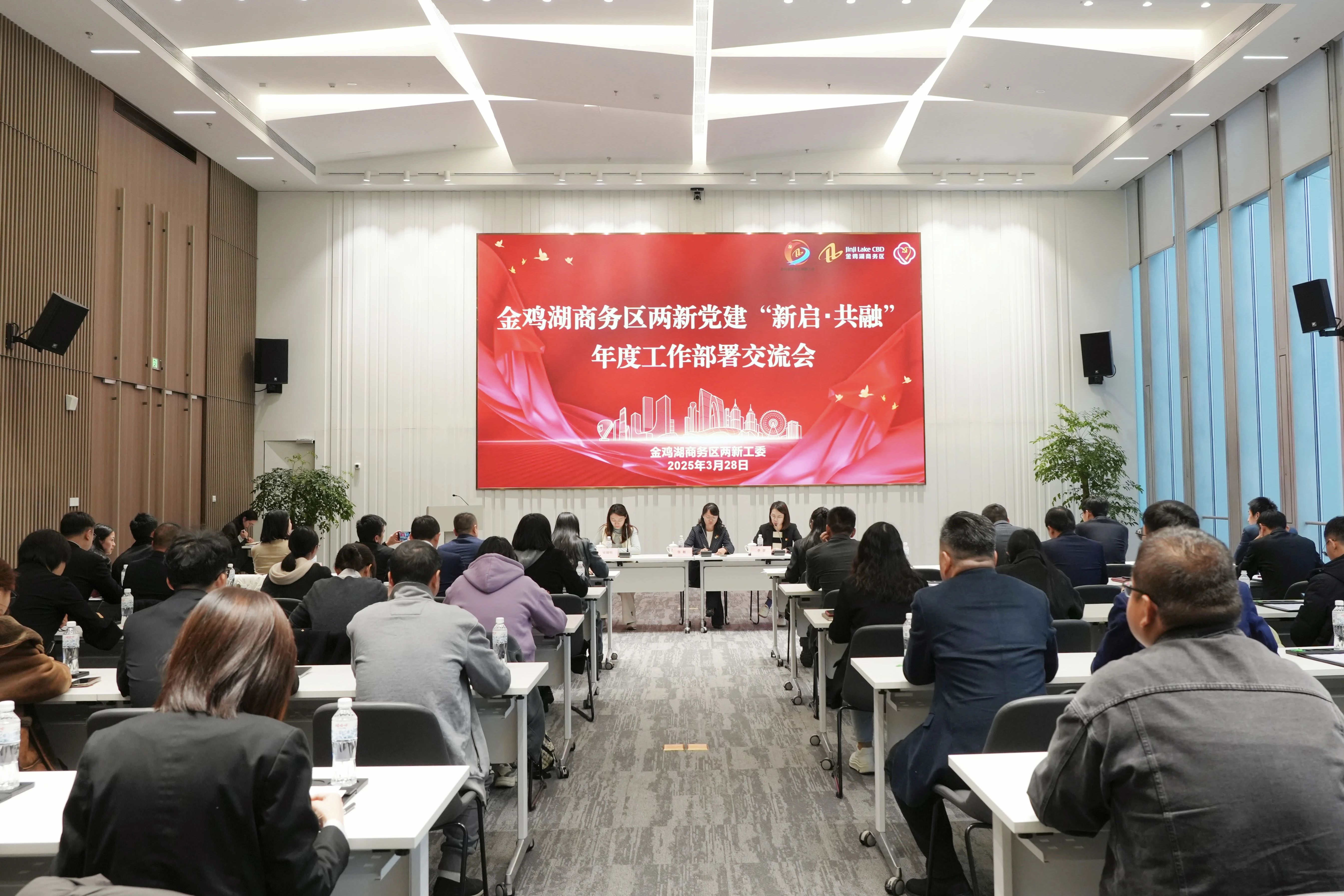 近日,金雞湖商務區兩新工委“新啟?共融”2025年度工作部署交流會在陽澄數谷成功召開。會上,金雞湖商務區兩新工委作工作部署,近60位區內黨支部代表齊聚一堂,共同謀劃兩新黨建工作新路徑,為園區開啟“下一個30年”發展新征程注入紅色動能。