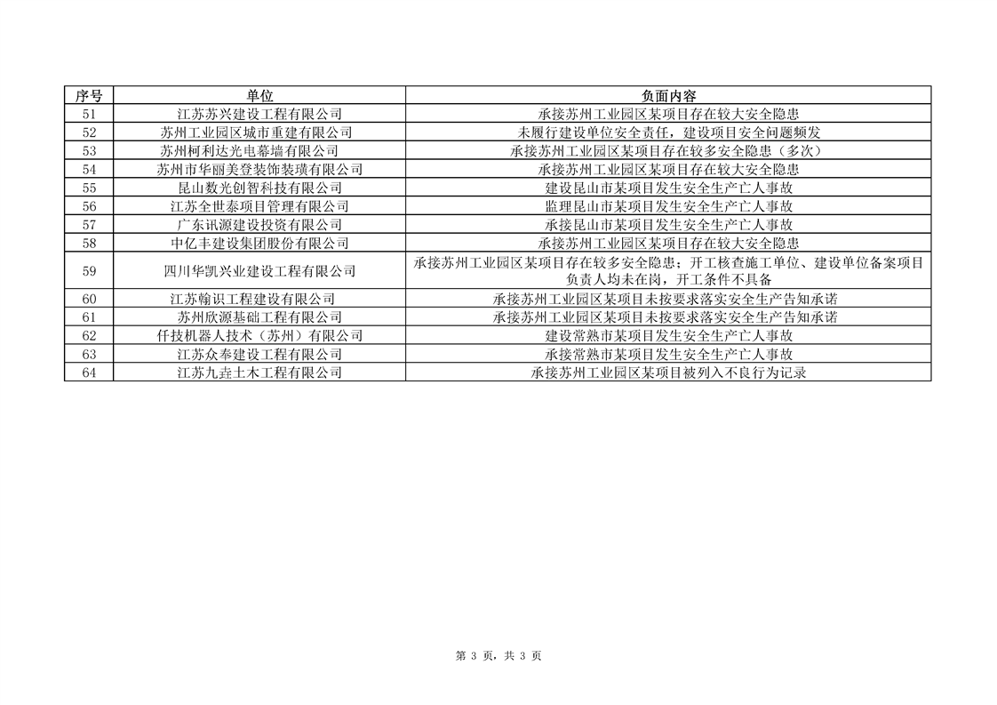 蘇州工業園區建筑施工安全生產告知承諾負面清單
