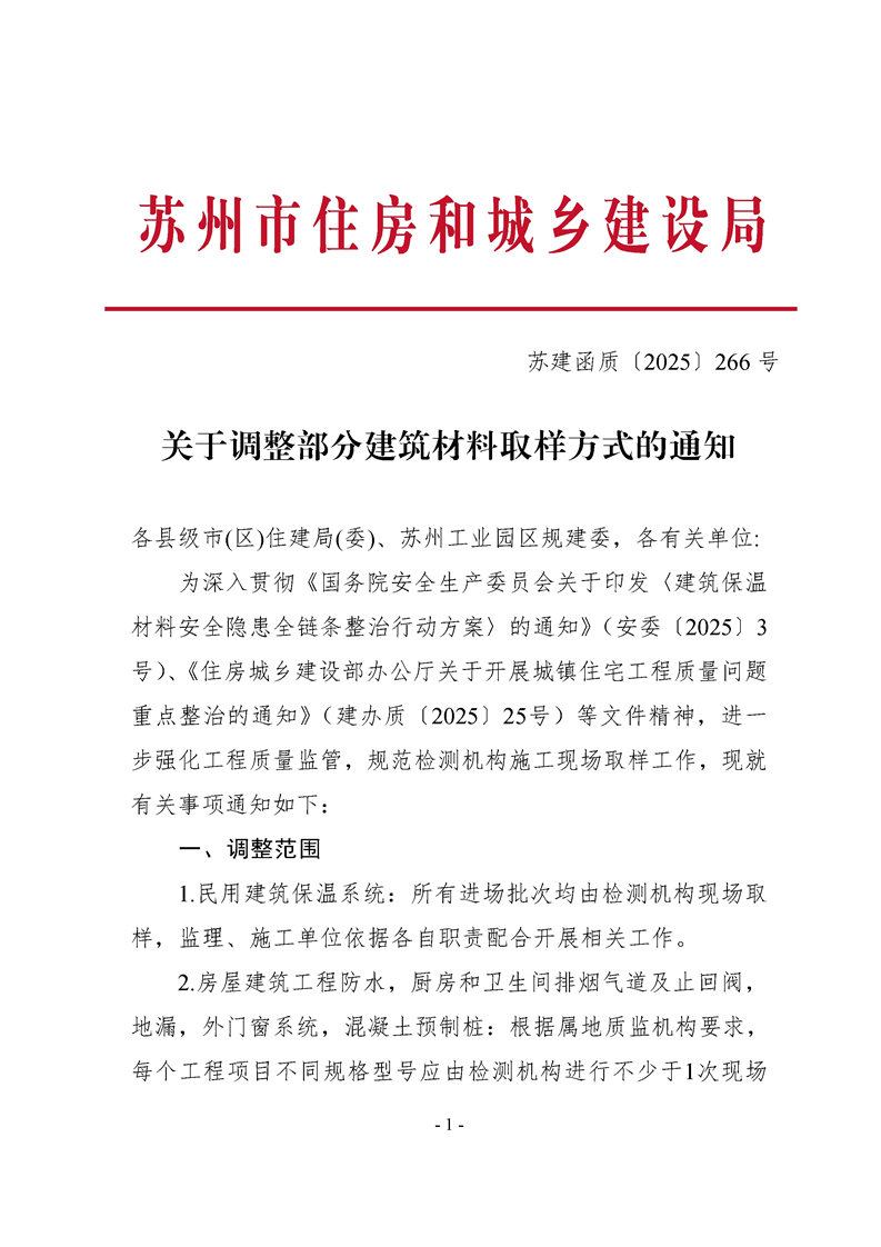 關(guān)于調(diào)整部分建筑材料取樣方式的通知