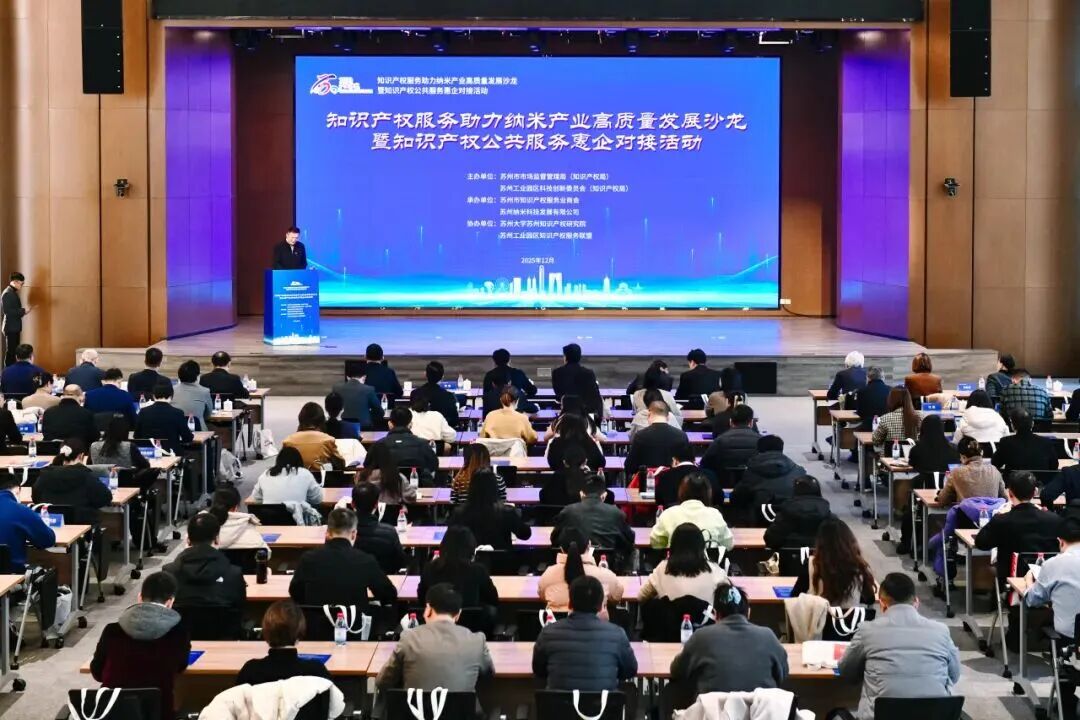 12月15日,知識產(chǎn)權服務助力納米產(chǎn)業(yè)高質(zhì)量發(fā)展沙龍暨知識產(chǎn)權公共服務惠企對接活動在園區(qū)納米城舉行。本次活動由蘇州工業(yè)園區(qū)科技創(chuàng)新委員會與蘇州市市場監(jiān)督管理局(知識產(chǎn)權局)聯(lián)合主辦,來自政府機構、科研院所、知識產(chǎn)權服務機構及納米產(chǎn)業(yè)企業(yè)共120余人參加了本次活動。