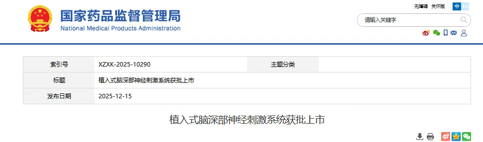 12月15日,國家藥監(jiān)局發(fā)布信息顯示景昱醫(yī)療科技(蘇州)股份有限公司(以下簡稱“景昱醫(yī)療”)的植入式腦深部神經(jīng)刺激系統(tǒng)獲批上市。