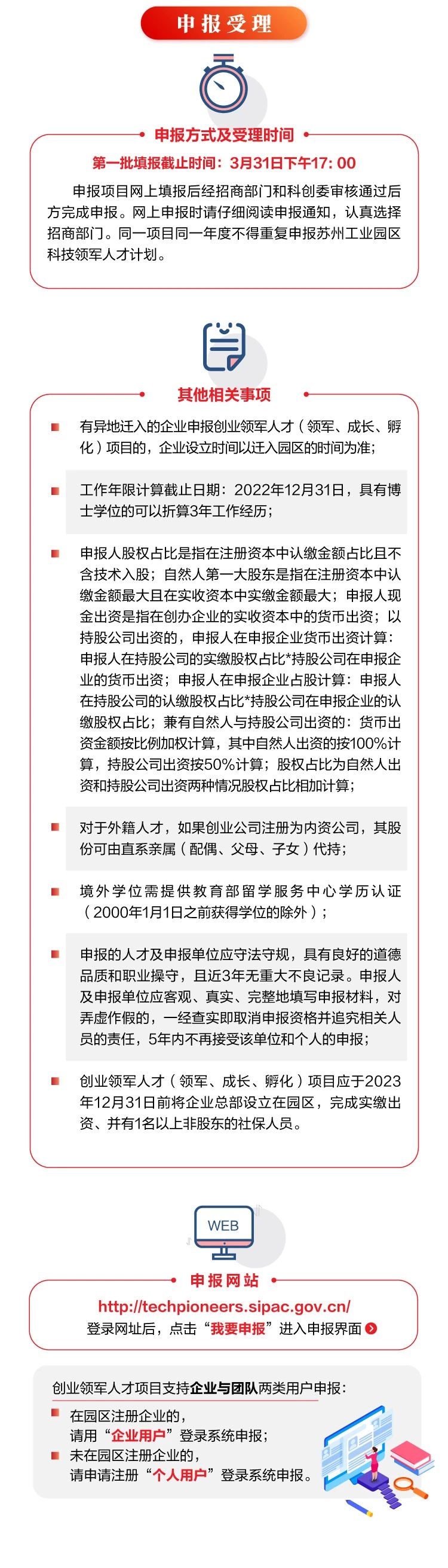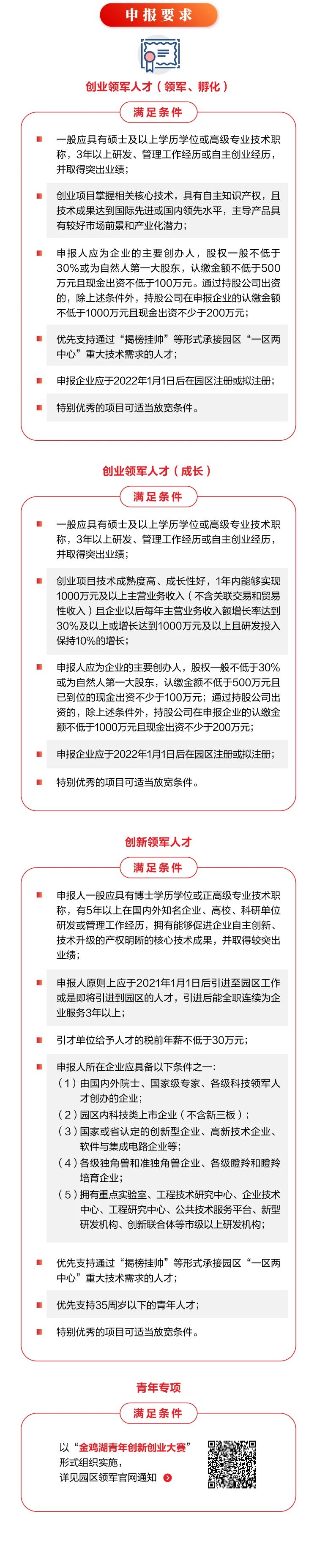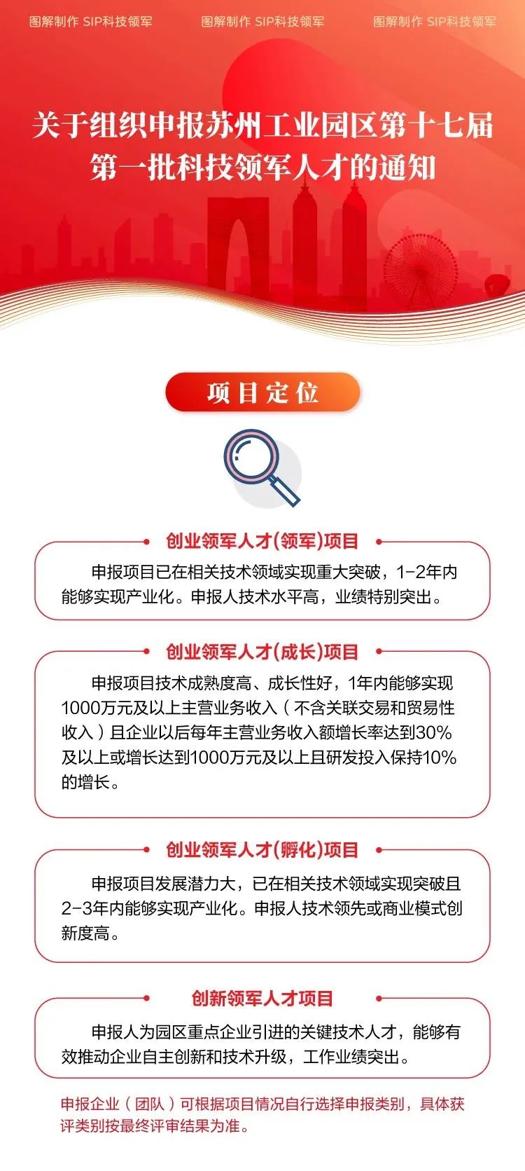 為加快推進開放創(chuàng)新的世界一流高科技園區(qū)建設,進一步加大高層次創(chuàng)新、創(chuàng)業(yè)領軍人才(團隊)引進力度,不斷提升園區(qū)創(chuàng)新源地、產業(yè)高地建設水平,現啟動第十七屆第一批園區(qū)科技領軍人才創(chuàng)新創(chuàng)業(yè)工程的申報工作。本屆科技領軍人才分兩批次集中受理評審,目前第一批正在申報。歡迎申報,載體請選擇:蘇州工業(yè)園區(qū)科技招商中心!