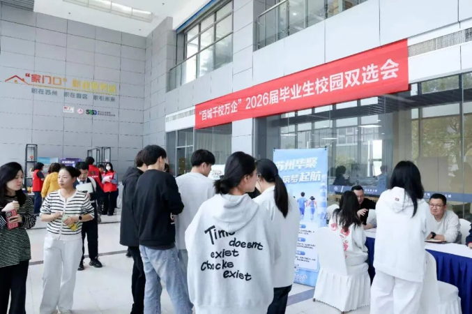 近日,蘇州工業園區服務外包職業學院舉辦2026屆畢業生校園雙選會,“家門口”就業服務站內人聲鼎沸。本次雙選會依托蘇州工業園區服務外包職業學院“家門口”就業服務站,助力畢業生精準對接優質崗位實現高質量就業,為廣大青年學子鋪就實現職業夢想的踏實道路。雙選會現場,勝科納米(蘇州)股份有限公司、蘇州銳諾醫療技術有限公司、蘇州維納科技有限公司、蘇州微創軟件有限公司等40家用人單位,端出900余個優質崗位,受到廣大學生的歡迎。
