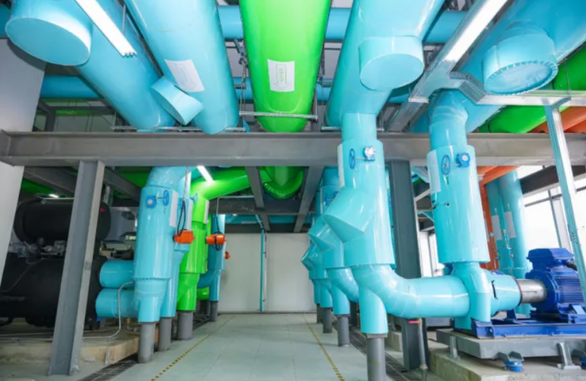 雖已立秋,蘇州的氣溫卻依然居高不下。清晨6:30,蘇相合作區能源中心的冷凍機房早已開啟“忙碌模式”:磁懸浮冷機與高壓變頻離心機交替運轉,低沉的機械聲規律而平穩,一旁的離心式水泵同步發力,將冷水精準輸送至管網。抬頭望去,各色管道縱橫交錯卻井然有序,進水、出水、冷水、冷凍水,沿著專屬路徑奔流不息,最終化作穩定可靠的冷源,源源不斷地輸送到周邊建筑,開啟新一天的供冷服務。
