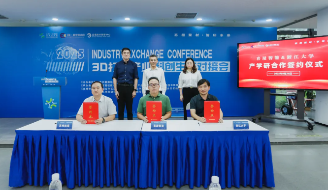 對接會現場,蘇州喜屋智能科技有限公司與浙江大學進行了產學研合作簽約。未來,雙方將在技術聯合攻關、成果轉化落地等方面展開深度合作,共同為蘇相合作區3D打印產業的發展積勢蓄能。