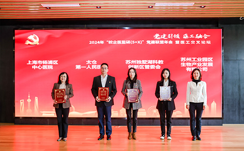 “校企醫監研(5+X)黨建聯盟”是在上海理工大學健康科學與工程學院與企業、醫院、監管部門、研究機構黨建聯建的基礎上,與社區、政府等更多單位開展更多形式的黨建聯建合作,旨在統籌多方資源,以黨建引領搭平臺、業務合作謀發展,讓黨建之“手”深入聯建之“心”。現場,蘇州獨墅湖科教創新區管委會、蘇州工業園區生物產業發展有限公司、上海市楊浦區中心醫院、太倉市第一人民醫院等新成員正式加入該黨建聯盟,推動黨建聯盟朋友圈“再+4”。