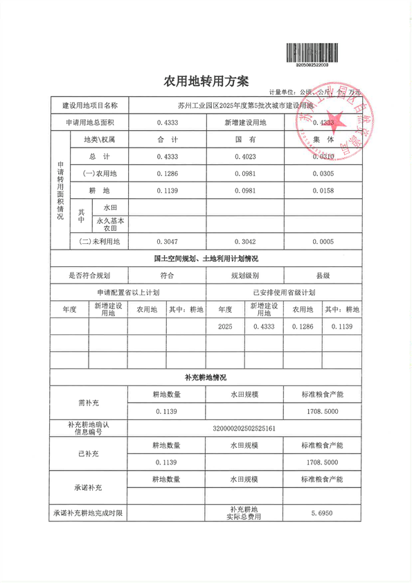蘇州工業(yè)園區(qū)2025年度第5批次城市建設(shè)用地-報批材料