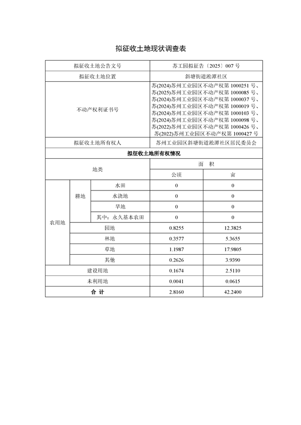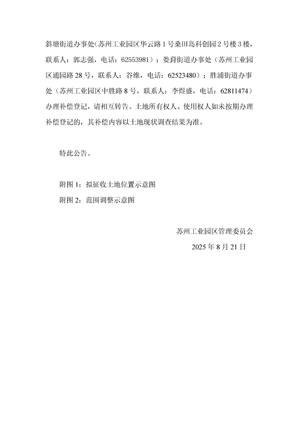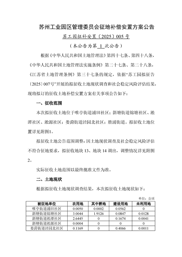 蘇州工業(yè)園區(qū)2025年度第8批次城市建設用地--蘇州工業(yè)園區(qū)管理委員會征地補償安置方案公告(蘇工園征補安置〔2025〕005號)