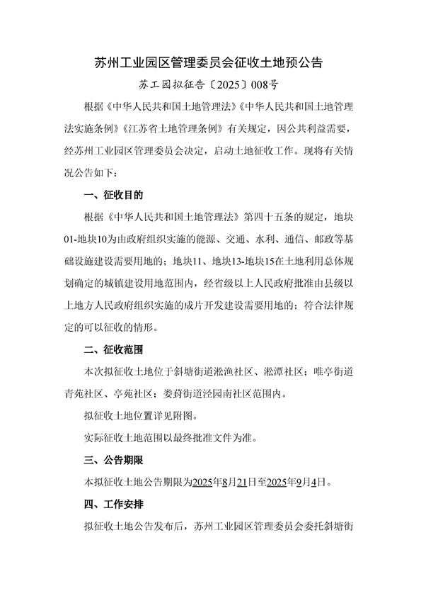 蘇工園擬征告〔2025〕008號(hào)--征收土地預(yù)公告