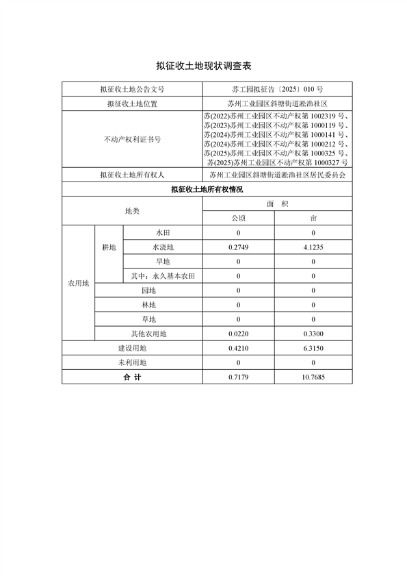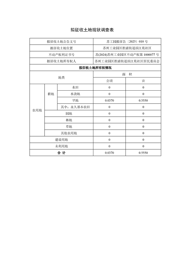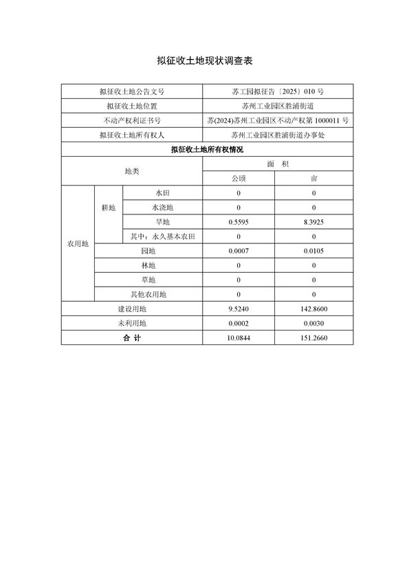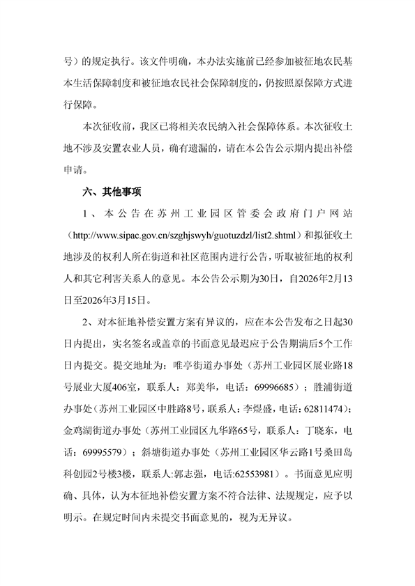 蘇州工業(yè)園區(qū)管理委員會征地補償安置方案公告(蘇工園征補安置〔2026〕001號)
