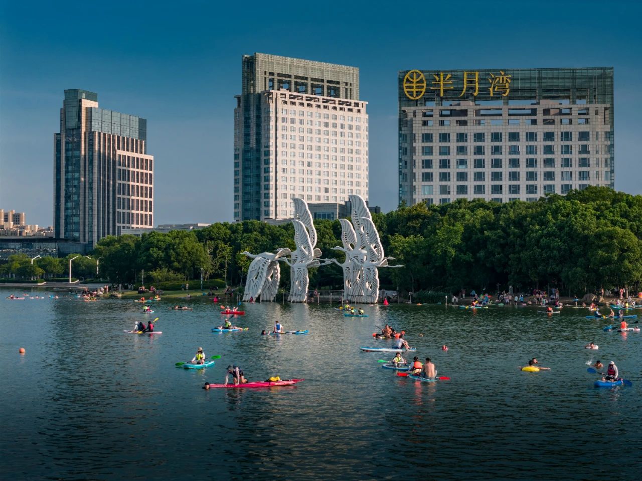 而同樣在這個盛夏,另一種形態的“附近”正于水面悄然展開。周末午后的獨墅湖畔,白鷺點水,波光瀲滟,幾十塊彩色槳板在湖面排成一道流動的風景線。從上海趕來參加“水上嘉年華”的程序員小林,雖然一開始跪在板上略顯笨拙,卻笑得格外燦爛:“本來以為這種高溫天只能躲在空調間,沒想到在湖上認識了一群板友——槳板,正在變成我們這代人的新社交貨幣?!?/p>