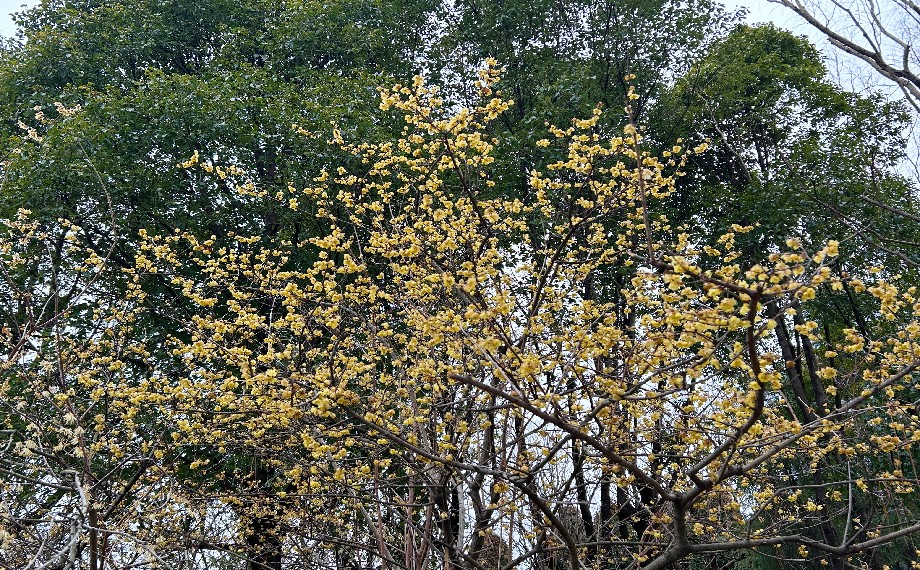 除了粉梅,園內(nèi)嫩黃的蠟梅也競(jìng)相綻放,星星點(diǎn)點(diǎn)棲于枝頭,寒風(fēng)中盡顯生機(jī)。深吸一口,清冽幽香漫入鼻腔,驅(qū)散寒意,只留滿心舒暢,為家門(mén)口的景致添了幾分暖意。