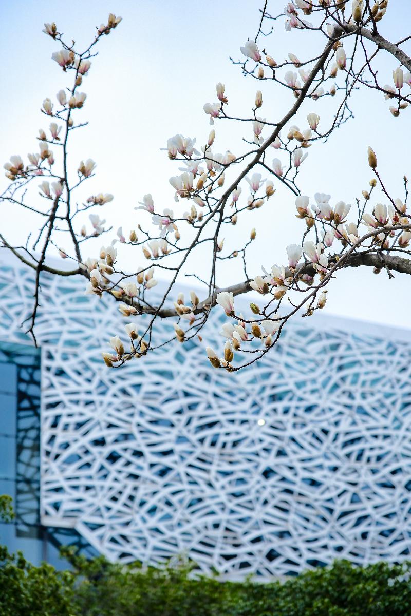蘇州文化藝術(shù)中心旁,枝頭玉蘭肆意盛放,潔白似雪、淡粉如霞,在極具設(shè)計感的“鳥巢”建筑與澄澈藍天的映襯下,花瓣舒展、身姿綽約,盡顯清雅高級的格調(diào)。隨手定格,無需刻意找角度,便是氛圍感拉滿的春日大片。漫步玉蘭樹下,伴著淡淡花香逛一逛“落日事集”,這份獨屬于春日的愜意與閑適,在此刻盡數(shù)擁有。