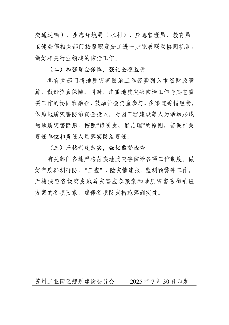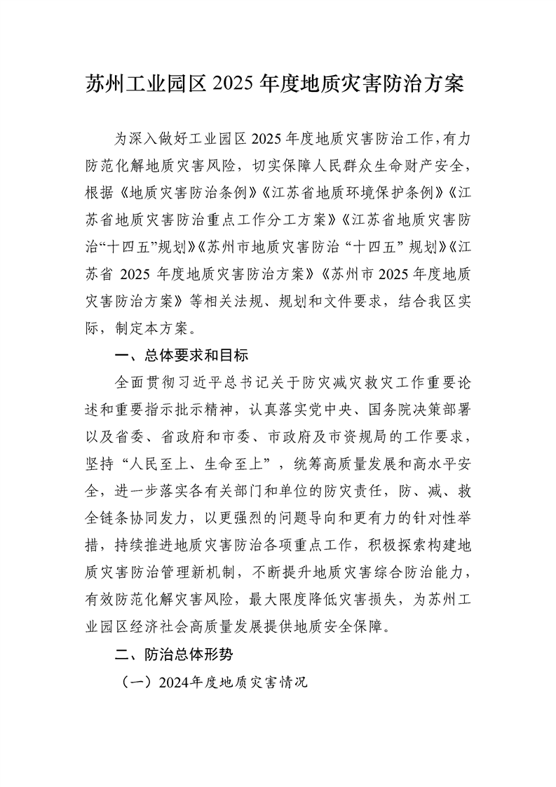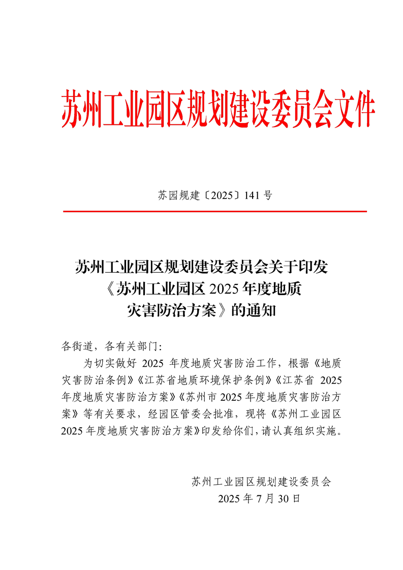 蘇州工業園區規劃建設委員會關于印發《蘇州工業園區2025年度地質災害防治方案》的通知