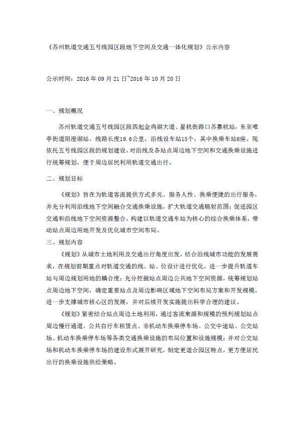 蘇州軌道交通5號線園區段地下空間及交通一體化規劃