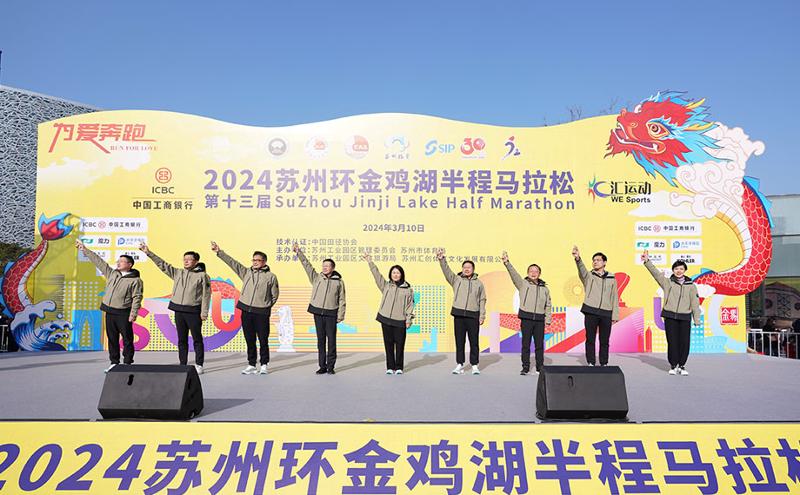3月10日8時(shí)半、2024第13回蘇州環(huán)金鶏湖ハーフマラソンが熱気満々でスタートした。今年のイベントにはハーフマラソン(21.0975キロメートル)、ヘルスラン(約10キロメートル)、ファンラン(約5キロメートル)が含まれ、合計(jì)で3萬(wàn)人の選手が參加した。