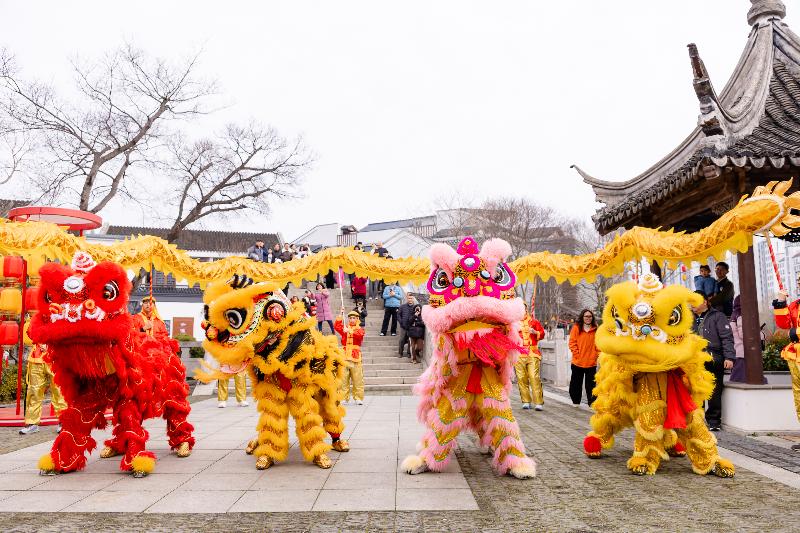 舊暦正月初一(2月17日)、初五(2月21日)、蘇州市舞龍燈無形文化遺産伝承者代表である蔣達(dá)夫氏が率いる百花洲龍燈隊が、それぞれ園區(qū)の圓融時代広場、斜塘老街、月光埠頭、李公堤の4大商業(yè)圏で素晴らしい龍舞や獅子舞パフォーマンスを披露し、伝統(tǒng)的な民俗で新春の喜びを燃え上がらせた。