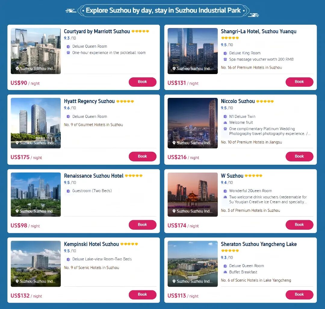 蘇州工業園區の海外特集ページは、5つの主要セクションで構成されている。動畫、寫真、文章、ワンクリック予約などの形式を通じて、言語や文化の壁を取り払い、世界中の旅行者が特集ページで公式情報を迅速に入手し、獨自の蘇州旅行プランを立て、「古今融合」の沒入型體験を気軽に始められる。旅行者は攜程(シートリップ)の海外プラットフォームにログインし、「SuzhouIndustrialPark」蘇州工業園區海外特集ページにアクセスするだけで、専用の旅をワンクリックで予約できる。