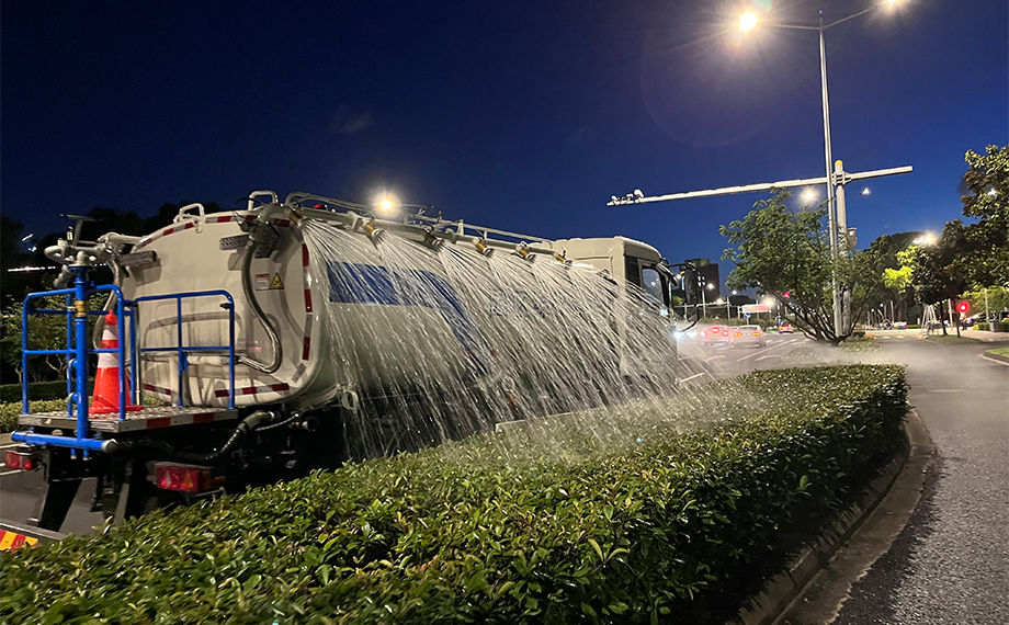 面對高溫干旱,傳統(tǒng)澆水方式疲于應(yīng)對大規(guī)模綠化養(yǎng)護的需求。為此,園區(qū)市政服務(wù)集團指導(dǎo)生產(chǎn)企業(yè),共同研發(fā)新型智能水車,其獨特設(shè)計的多向可調(diào)噴頭及前后水炮,通過駕駛室智能控制系統(tǒng)實現(xiàn)精準灌溉,既節(jié)省了人力成本,又大幅提升了澆水質(zhì)量與效率。這一創(chuàng)新技術(shù)的應(yīng)用,為園區(qū)綠化帶來了及時而充足的“甘霖”,確保了每一株植物都能得到充分的滋養(yǎng)。