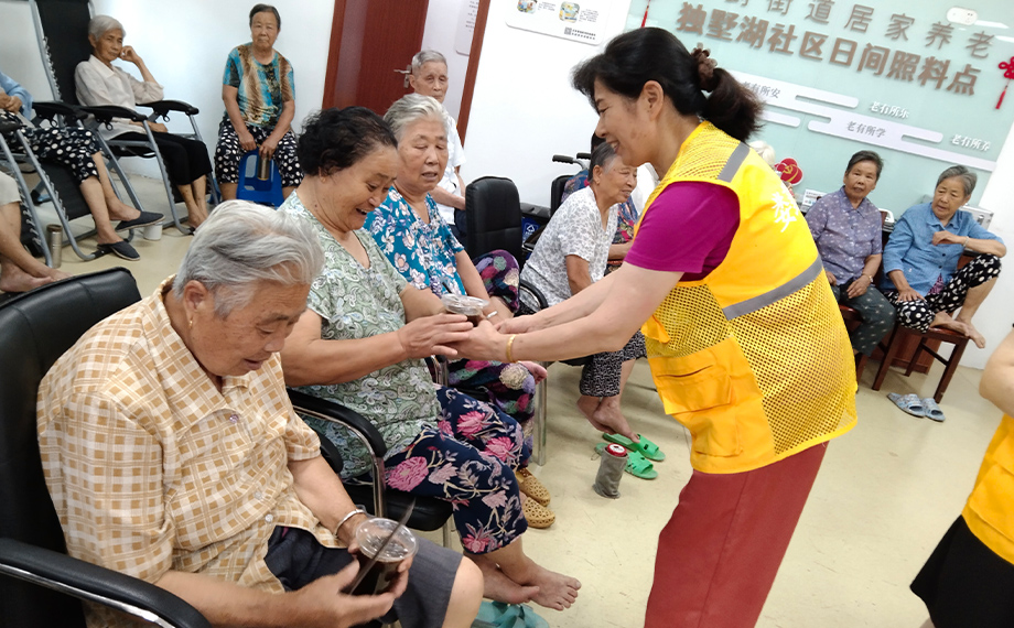 8月2日,唯亭街道綜合為老服務(wù)中心的會員收到微信通知:活動大廳周末也對外開放了。除了延長開放時間,多個社區(qū)養(yǎng)老服務(wù)設(shè)施還為老人提供綠豆湯、酸梅湯和涼茶等解暑飲品;東湖大郡日間照料中心在大廳顯眼處擺放藿香正氣水、降溫頭貼和茶包供有需求的老人自取;熙岸社區(qū)日間照料中心、鳳凰城社區(qū)日間照料中心等養(yǎng)老服務(wù)設(shè)施舉行“手繪團(tuán)扇”等活動,給炎炎夏日增添了一絲趣味;四季新馨湖園日間照料中心別出心裁地組織老人制作并品嘗涼面,幫助老人刺激食欲、增加胃口......室外艷陽高照蟬鳴悠長,室內(nèi)歡聲笑語不絕于耳,工作人員細(xì)心周到地為老人們提供各種服務(wù),讓老人們體會到具象的關(guān)愛與尊重。
