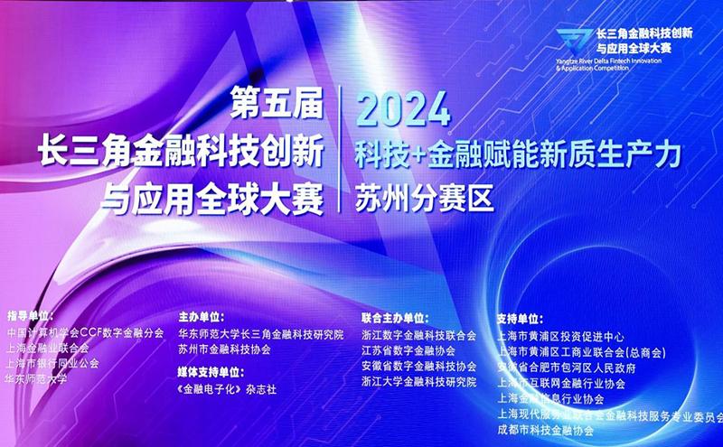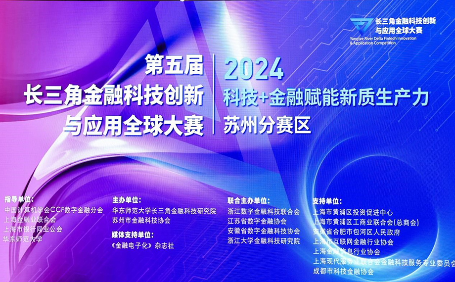 10月16日,由華東師范大學(xué)長(zhǎng)三角金融科技研究院、蘇州市金融科技協(xié)會(huì)牽頭,聯(lián)合上海市黃浦區(qū)投資促進(jìn)中心、浙江數(shù)字金融科技聯(lián)合會(huì)、江蘇省數(shù)字金融協(xié)會(huì)、安徽省數(shù)字金融科技協(xié)會(huì)、浙江大學(xué)金融科技研究院等單位共同舉辦的“第五屆長(zhǎng)三角金融科技創(chuàng)新與應(yīng)用大賽蘇州分賽區(qū)”活動(dòng)在江蘇省蘇州金雞湖國(guó)際會(huì)議中心成功舉辦。