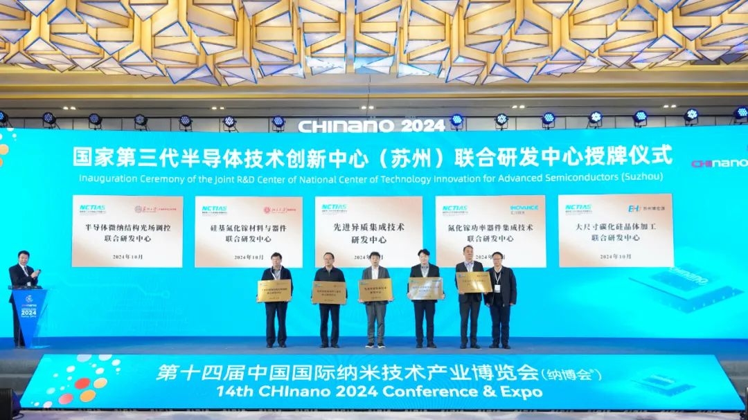 10月23日,第十四屆中國國際納米技術(shù)產(chǎn)業(yè)博覽會在蘇州工業(yè)園區(qū)開幕。在開幕式上,國家第三代半導(dǎo)體技術(shù)創(chuàng)新中心(蘇州)十大科技問題及研發(fā)成果發(fā)布,并為國家第三代半導(dǎo)體技術(shù)創(chuàng)新中心(蘇州)聯(lián)合研發(fā)中心授牌。