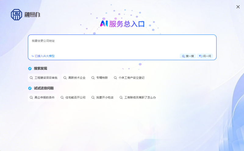為提升企業使用體驗感,“園區法人服務總入口”積極擁抱AI+浪潮,深度鏈接DeepSeek大模型,全國首創“AI服務總入口”,集結各部門精心打造的AI“人才助手”“高企助手”“企業開辦助手”等智能體矩陣,每個領域都有高級AI專家出謀劃策;打通了智能客服與AI搜索能力,打造了“搜”“問”“辦”全鏈深度融合的智能服務新模式,無需記住專業術語,企業只需像朋友對話一樣描述需求,平臺就能迅速解析場景,精準推薦服務方案。