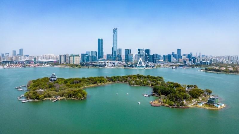 “園區即景區”,依托這一發展理念,園區的生態注腳體現在每一座公園、每一個街角和路口。四月初,桃花迎來盛放期,而園區欣賞桃花的最佳點位,正是眼前這一片湖心綠洲。桃花島占地10公頃,島內遍植成百上千株桃花,另有海棠、櫻花、梨花等等。春季登島,看緋云浸染碧波,江南雅韻在眼前幻化成實景。