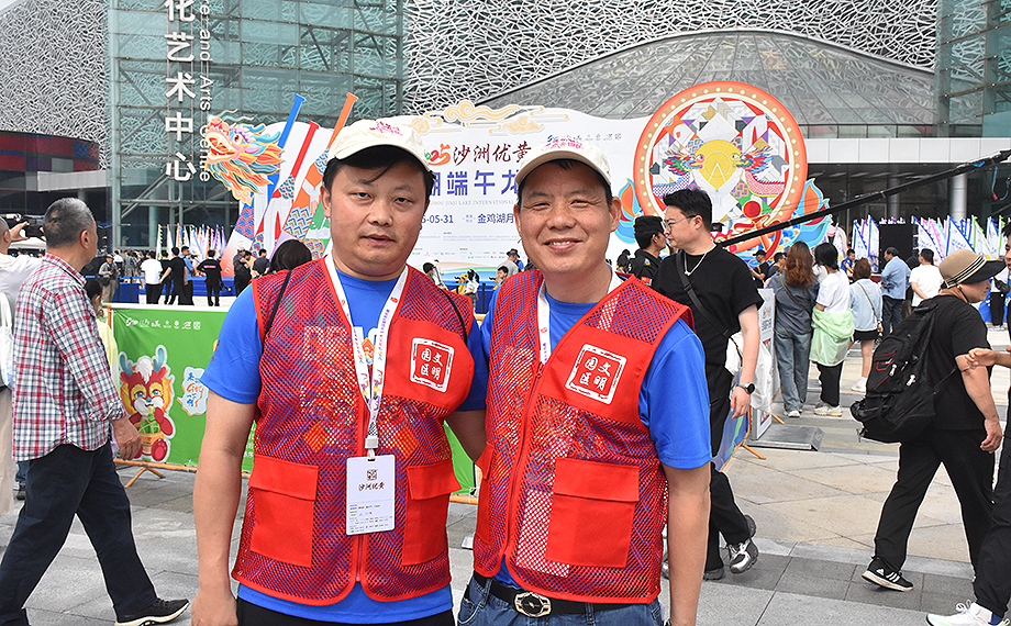 “體驗區請往這邊走!”在非遺科技龍舟體驗區,網格長楊章繹正熱情地為游客指引方向。“前期我們進行了踩點、人員安排等,今天我六點半就到現場待命了。這次我主要負責非遺科技體驗區游客問詢、觀賽引導及秩序維護等工作。”楊章繹是來自園區企業江南嘉捷的員工,也是一名資深志愿者。自金雞湖端午龍舟賽首次招募志愿者開始,他就一直報名參與賽事的志愿服務工作。“能夠持續為園區大型賽事貢獻自己的力量,我覺得很快樂也很自豪。我們要通過完善的服務,展現蘇州和園區的城市溫度。”