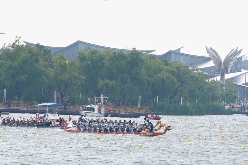 本屆賽事共69支隊(duì)伍參賽,總參賽人數(shù)1502人,競(jìng)賽組與邀請(qǐng)組雙線并行,既有專業(yè)隊(duì)伍的速度與激情,也有國(guó)際友人解鎖“龍舟新姿勢(shì)”,還有龍舟少年團(tuán)的熱血登場(chǎng),“龍舟精神”的多元魅力盡顯。
