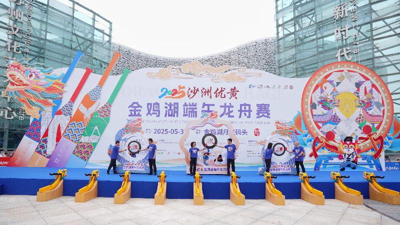5月31日,2025沙洲優(yōu)黃第十五屆金雞湖端午龍舟賽在月光碼頭鳴鑼開(kāi)賽。