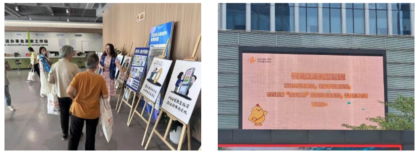 宣傳月期間,商務區同步織就線上線下立體傳播網絡,通過媒體平臺持續推送解析漫畫與典型案例,擴大傳播效應;商務樓宇電梯、電子屏滾動播放警示標語,確保“防非”信息“抬頭可見、駐足可學”。