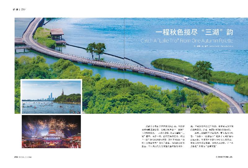在本期《東方航空》雜志中,蘇州工業(yè)園區(qū)的三湖秋色一覽無(wú)余。文章通過(guò)“浪漫金雞湖的歸心旅途”、“蟹肥秋濃,滿澄盡啖黃金甲”、“蕩起雙槳,獨(dú)墅湖涌動(dòng)青春活力”三個(gè)板塊,將園區(qū)的秋韻花卷娓娓道來(lái)。它向讀者呈現(xiàn)了金雞湖的都市繁華、陽(yáng)澄湖的肥美湖鮮,以及獨(dú)墅湖的青春活力,讓東航國(guó)際國(guó)內(nèi)旅客在高空閱讀中,感受到蘇州工業(yè)園區(qū)的開放、友好與活力。