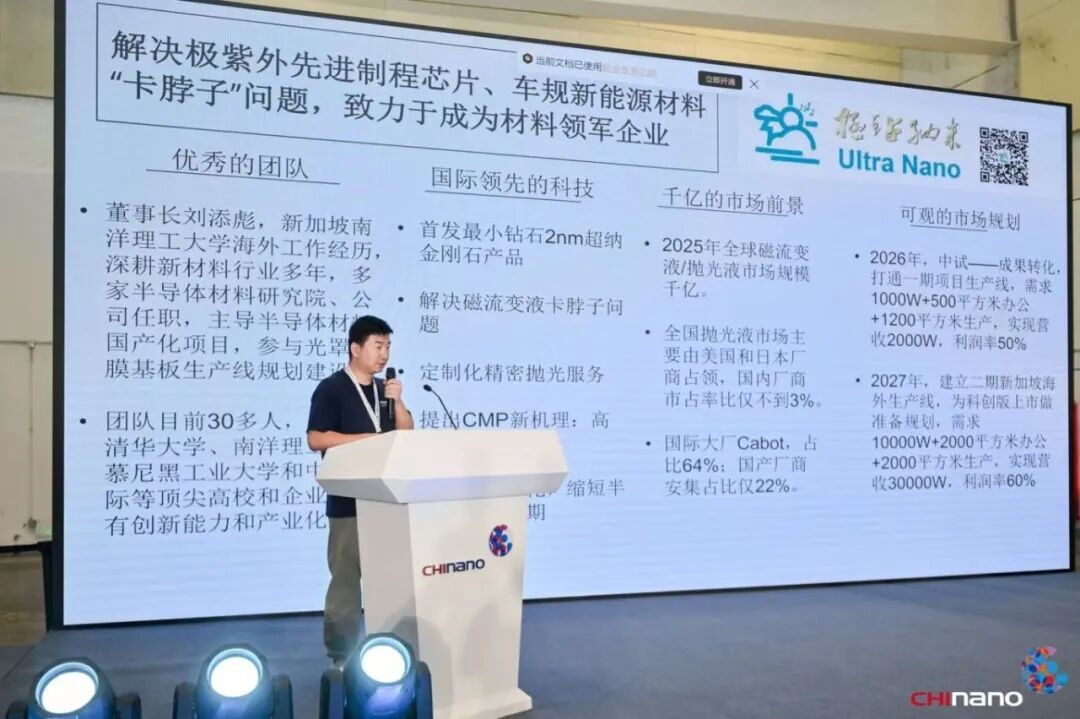 蘇州極鉆納米科技有限責(zé)任公司CEO劉添彪,介紹了《超納金剛石三代半加半導(dǎo)體精拋材料和算法產(chǎn)業(yè)化》。超納金剛石具有量子特性的超小尺寸效應(yīng),比普通金剛石更硬,導(dǎo)熱性、光、聲、電、磁、負(fù)載、生物相容性,可應(yīng)用在精密拋光、磁流變、納米機器人、核電池等領(lǐng)域。該項目聚焦于超納金剛石材料的宏量生產(chǎn),粒徑晶型表面調(diào)控,相比較傳統(tǒng)的爆轟法破碎法,其超納金剛石尺寸更小一個數(shù)量級,更凸顯量子特性。作為超納材料高新技術(shù)的先鋒,該公司以半導(dǎo)體產(chǎn)品與車規(guī)新能源材料雙輪驅(qū)動,構(gòu)建起以研發(fā)為主導(dǎo)、生產(chǎn)、銷售、進(jìn)出口為一體的產(chǎn)學(xué)研結(jié)合新星企業(yè),專注于硬科技、卡脖子、國產(chǎn)替代的戰(zhàn)略布局。