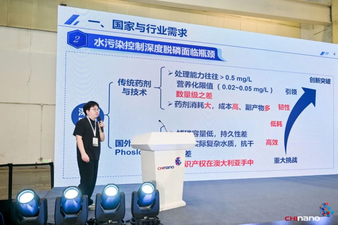 蘇州拓?fù)浞肿涌萍加邢薰狙邪l(fā)經(jīng)理張濤,介紹了《基于納?互鎖捕磷劑的新型材料、裝備與技術(shù)保障體系的建立》。該公司科研團(tuán)隊經(jīng)過對金屬中心的對離子不斷地調(diào)控,發(fā)展了以碳酸根為對離子的新型吸附活性位點,并利用結(jié)構(gòu)相似性提高磷吸附自發(fā)性、交換配位可逆性和pH適用范圍,降低磷吸附與脫附的活化能壘,拓展了磷吸附劑的實用韌性,并突破了傳統(tǒng)認(rèn)知。
