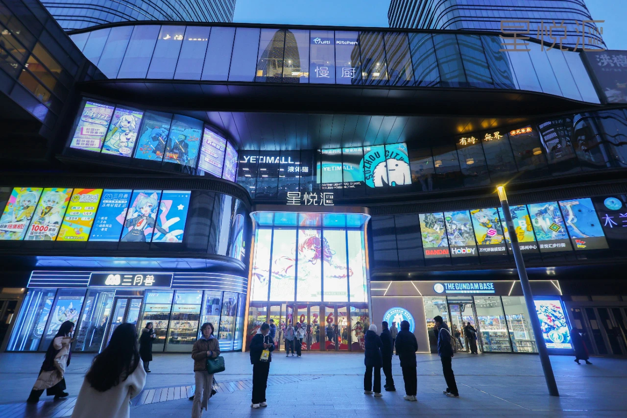 星悅匯作為園區恒泰集團重點商業項目,自2024年調改以來以“首店引育+IP聯動+精細運營”為核心路徑。2025年引入三個全國首店和浪浪山小妖怪江蘇首店,落地騰訊王者榮耀江郡主題樓全國首展、使命召喚手游江蘇首展等IP活動,創新舉辦蘇州獨家易烊千璽生日痛樓應援、周杰倫生日獨家痛樓等活動。項目獲評全省首個“江蘇動漫潮玩蘇州營地”,成為行業內廣泛認可的動漫潮玩商業載體,為園區乃至蘇州市民提供全新消費體驗。