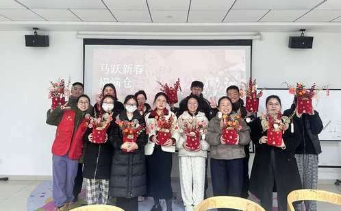 香堤社區的居民們則圍坐一堂,親手制作新春抱抱桶。銀柳、冬青、金葉在指尖交錯,紅果與??c綴其間,一桶桶繁花錦簇的作品,不僅承載著制作者的新年祈愿,更被送往快遞小哥、外賣騎手等新市民勞動者手中。那些平日里穿梭街巷、為他人送去便利的身影,在這一刻,也收到了一份屬于自己的、來自鄰里的手作祝福。