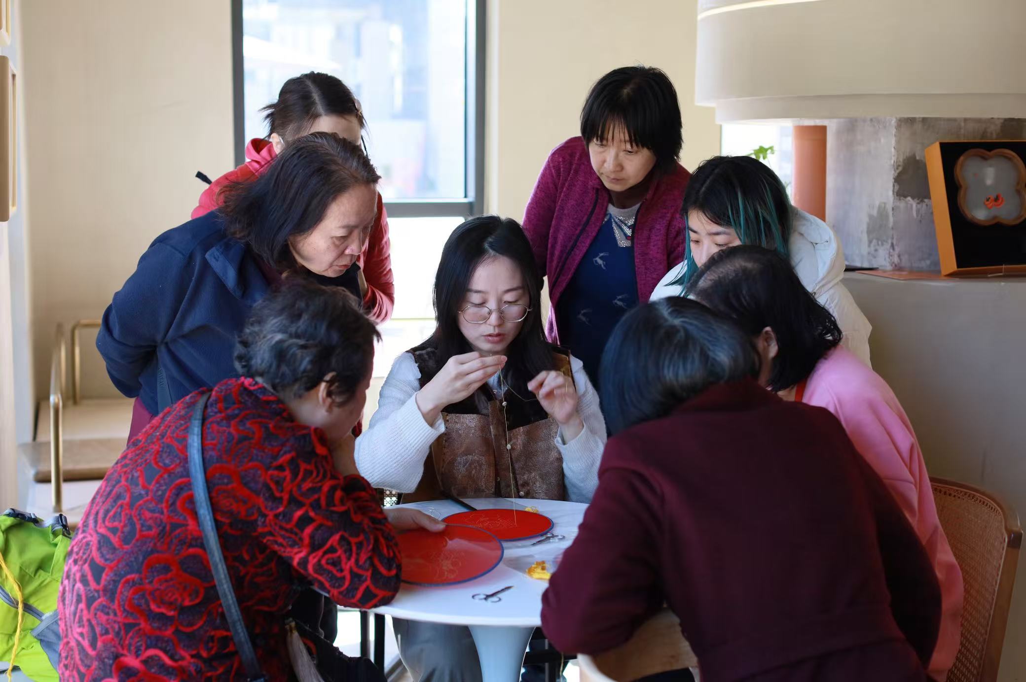 現(xiàn)場,參與者們圍坐一堂,認(rèn)真了解蘇繡歷史,在專業(yè)老師的指導(dǎo)下,一針一線繡出屬于自己的刺繡作品。不少家長帶著孩子一同參加,感慨道:“平時很少接觸這樣的傳統(tǒng)技藝,今天親手體驗,才真正感受到蘇繡的細(xì)膩和匠心,這樣的活動特別有意義。”