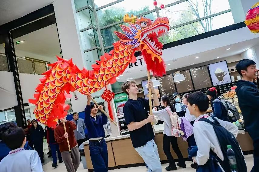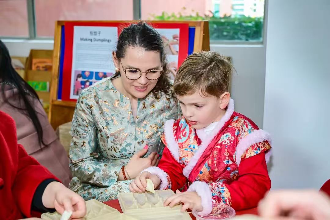 事實上,SSIS的新春慶祝遠(yuǎn)不止一場音樂會,學(xué)校還打造了精彩的集會和沉浸式體驗活動,各學(xué)部也開展了豐富多彩的新年主題活動:幼兒園游園會上,金發(fā)碧眼的小朋友剪起了窗花;小學(xué)部集會中,孩子們分享了各自對春節(jié)的理解;中學(xué)部主題活動中,舞龍舞獅、寫福字成為最受歡迎的環(huán)節(jié)。校園的每一處都被中國紅妝點,每一張臉上都映照著節(jié)日的暖光。