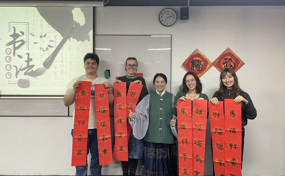除了美食與游戲,文化體驗同樣不可或缺。春節(jié)前,SKEMA商學(xué)院還組織了多場書法體驗活動,寫春聯(lián)、寫福字備受歡迎。在墨香縈繞的教室里,外籍學(xué)子們從執(zhí)筆姿勢學(xué)起,一點一橫、一撇一捺地模仿漢字的結(jié)構(gòu)與神韻。紅紙鋪開,一個個真誠的“福”字、一幅幅寓意吉祥的春聯(lián)陸續(xù)誕生。學(xué)生們興奮地與作品合影,感受著中國人以筆墨寄托對新春美好期盼的獨特傳統(tǒng)。