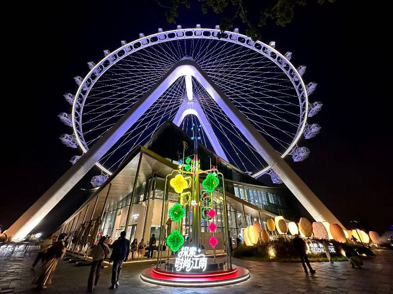 金雞湖景區(qū)匯聚“商旅文體展”多元業(yè)態(tài)與多彩活動(dòng),成為假日熱門打卡目的地,清明小長(zhǎng)假累計(jì)接待游客68.92萬人次,同比增長(zhǎng)7.26%。“狀元駕到?陽澄有禮”金雞湖快閃巡游萌趣出圈,聯(lián)動(dòng)蘇州陽澄半島樂園人氣IP,文武狀元人偶首次走出樂園,現(xiàn)身城市廣場(chǎng)互動(dòng)打卡,派送好運(yùn)好禮;坐落在湖心的桃花島繁花盛開,“‘趣’和春天約會(huì)”金雞湖桃花文化季重磅亮相,創(chuàng)新采用“游戲引流+桃花幣激勵(lì)+多元體驗(yàn)”模式,串聯(lián)水上運(yùn)動(dòng)、打卡場(chǎng)景、互動(dòng)演繹等豐富內(nèi)容,開啟全新登島體驗(yàn);蘇州之眼摩天輪“探索時(shí)尚江南”活動(dòng)以太空艙視角呈現(xiàn)璀璨燈光秀,結(jié)合湖畔時(shí)光市集、非遺手作體驗(yàn)、愛樂之城路演,盡顯時(shí)尚江南的獨(dú)特韻味;圓融時(shí)代廣場(chǎng)“天幕市集?春天不聊草”打造沉浸式春日花境,匯聚文創(chuàng)手作、鮮花綠植、輕食甜品等,解鎖度假儀式感。此外,蘇州文化藝術(shù)中心“落日事集”同步開市,市集展演、尋寶游戲、露天電影豐富假日體驗(yàn);金雞湖美術(shù)館“大浪淘金——方力鈞藝術(shù)展”全面呈現(xiàn)藝術(shù)家創(chuàng)作歷程,帶來高品質(zhì)藝術(shù)享受;星悅匯推出動(dòng)漫展演、航天水友賽等潮流玩法,精準(zhǔn)吸引年輕群體;蘇州中心、誠(chéng)品生活、久光百貨、新光天地等商圈多重福利疊加,環(huán)湖品牌酒店推出時(shí)令春菜套餐與特色住宿禮遇,滿足游客多元消費(fèi)需求。