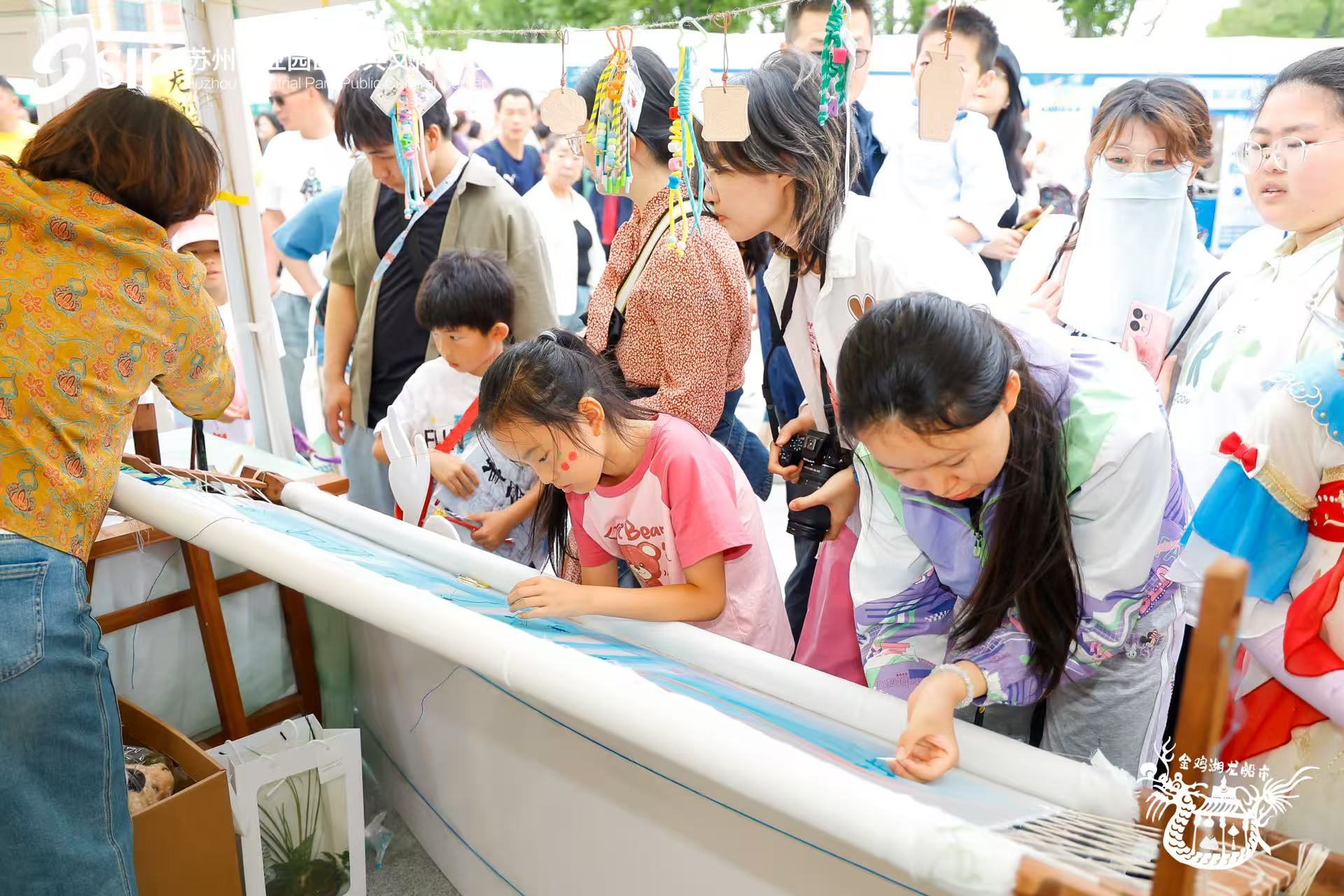 每逢端午節(jié),到金雞湖畔看龍舟賽、逛非遺市集,已然成為市民游客的節(jié)日新民俗,也是展示蘇州非遺風采的重要窗口,深受大眾喜愛,堪稱文旅“現(xiàn)象級”節(jié)事爆品。當蘇繡的細膩經(jīng)緯與潮流設計相遇,當南洋風物邂逅江南時節(jié),當千年非遺走進國際化創(chuàng)新高地,這個端午,一場傳統(tǒng)與現(xiàn)代交織的非遺盛宴在金雞湖畔火熱上演。