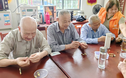 面對(duì)銀齡群體精神文化供給不均衡現(xiàn)狀,蓮韻社區(qū)日間照料中心創(chuàng)新打造“藝趣工坊”,推出菩提串珠、水晶花藝、綠植盆栽等手工課程,為長者搭建了一座“精神糧倉”,在創(chuàng)造中重拾生活意趣。在紅色管家志愿者的指導(dǎo)下,一顆顆菩提籽在指尖串聯(lián)成寓意吉祥的珠鏈,晶瑩剔透的水晶花在巧手下綻放出別樣光彩,充滿生機(jī)的綠植盆栽在精心照料中煥發(fā)盎然綠意,這些手工項(xiàng)目宛如“生活的調(diào)色盤”,不僅成為疏解孤獨(dú)感的“情緒減壓閥”,更以美育浸潤煥發(fā)銀齡精神風(fēng)貌,推動(dòng)社區(qū)文化服務(wù)從零散活動(dòng)向常態(tài)化滋養(yǎng)體系躍升,為精塑“雅趣共生”服務(wù)格局注入鮮活脈動(dòng)。