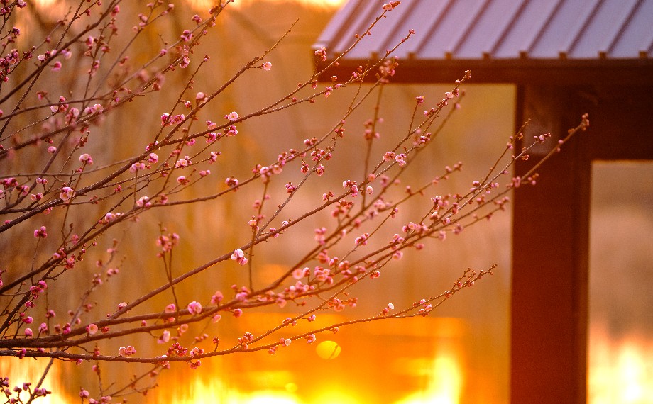 梅,素有“五福花”之雅稱,五片花瓣對應(yīng)“福祿壽喜財”,每一縷梅香里都裹挾著歲月的美好期許。花瓣舒展,嫩黃花蕊點綴其間,柔光拂過,光影流轉(zhuǎn),風動枝搖,滿樹爛漫,便是初春最溫柔的景致。